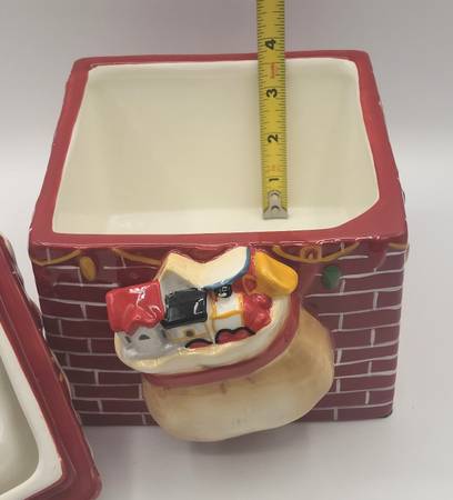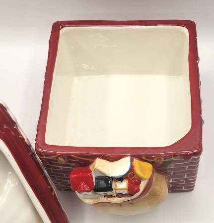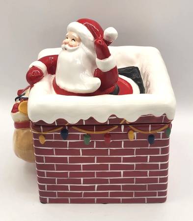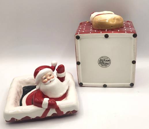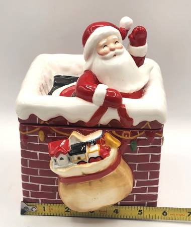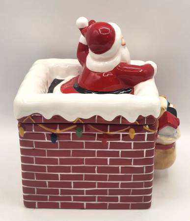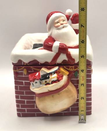 Vintage Santa going Down the Chimney Cookie or Candy Jar Ceramic Jackson & Perkins Christmas Decor Measures approximately: 7 1/2" tall X 5 1/2" square base. **Please see all pictures for the...