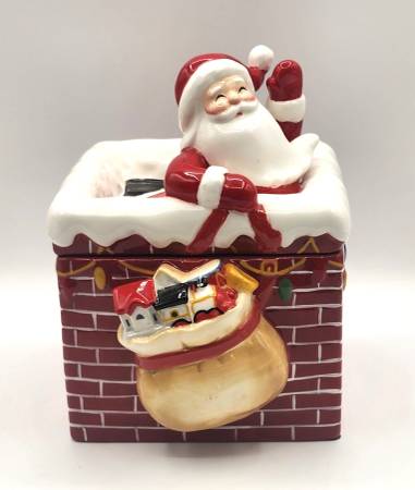 Vintage Santa Down the Chimney Cookie or Candy Jar Ceramic -...