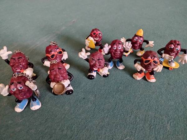 Vintage PVC Rubber figurines. 1 Mickey, 2 Minnie, 10 California Raisins, and 4 of the Rise n Shine Raisins are keychains. Excellent condition. 1$ ea. any Single 10$/all Call (preferred) or text. No...
