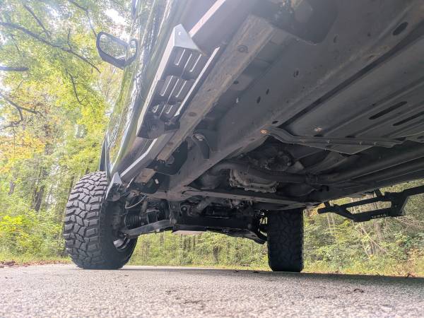 So clearly, it’s lifted. And it wears that lift like a tailored suit. Sitting on aftermarket XD Series wheels wrapped in aggressive Cooper Discoverer STT Pro tires, this thing doesn’t just look like it could take on extreme terrain - it actually can. The Rough Country shocks keep it planted, and the cold-air intake helps the 5.6L V8 breathe better when you're working it hard, or just merging onto the highway with authority.