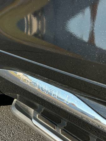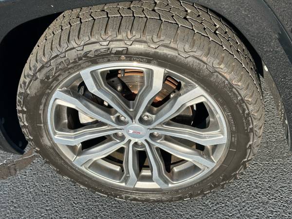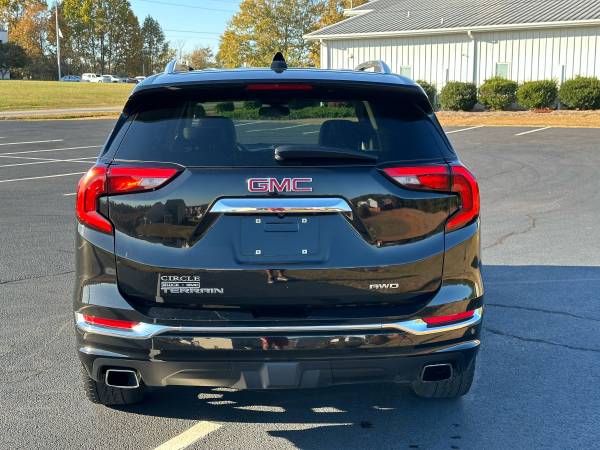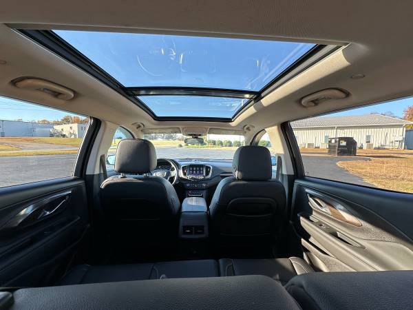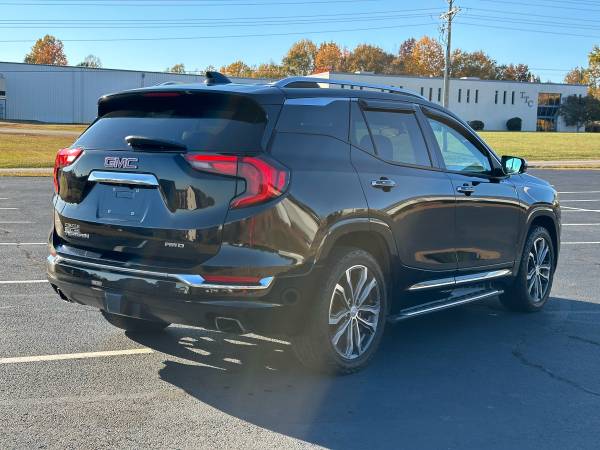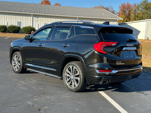 This GMC Terrain comes equipped with the following features: IntelliBeam headlights, wireless device charging (K4C), ADVANCED SAFETY PACKAGE, factory-installed tow hitch, panoramic roof, SUNROOF, Skyscape power steering with power sunshade, and black perforated leather seating with Denali logo.