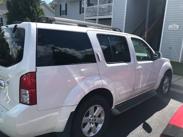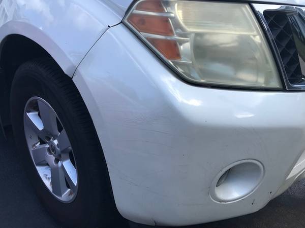 2008 Nissan Pathfinder with rear third seating and sunroof. Vehicle has had oil change on average every 3000 to 4000 miles. Transparency: small oil leak in headcover gasket, front right quarter panel and bumper damage, rear lift gate and bumper damage, right front passenger window control needs to be replaced, AC fan needs repair or replacement. Front drivers seat has rips in leather. Vehicle drives and runs well.