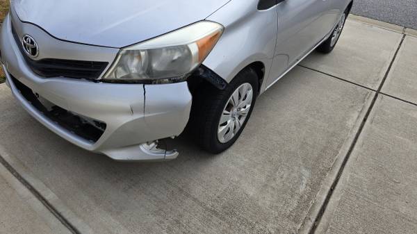 2013 Toyota yaris LE. Has 130167 miles. Some damage to front drivers side bumper(as pictured) scratch on the driver's side door.