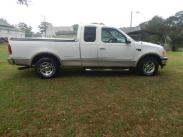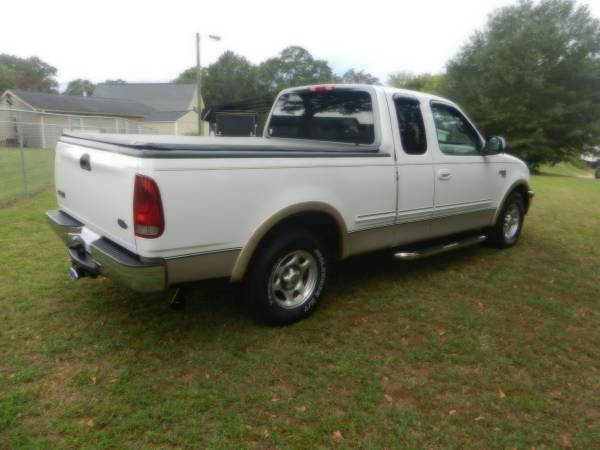1998 Ford F-150 Super Cab Lariat 2WD-2 Local Owners*90,794 Actual Miles* This is a Local 2-Owner Clean Carfax, Sold new @ Grant Ford in Pickens SC. It has original window sticker, original book. White with Gold accent, Automatic Transmission, 4.6 L V-8 Triton Engine, all power fully loaded, power steering, power brakes, power windows, power door locks, power mirrors, power driver's seat, factory am/fm stereo, cassette, factory 6-disc cd changer, factory leather bucket seats with large center console, factory keyless entry-have both factory keys and remotes, factory tow packages, tinted windows with vent shades, bug guard, folding bed cover, bed mat, new custom Lariat stripes, chrome front bumper, chrome rear step bumper, New Westin Chrome Step Bars, factory aluminum wheels with New Yokohama Geolandar H/T RWL Tires. Last 2 years many mechanical upgrades, plugs, plug wires, hoses, belts, battery, brakes. This is an extra nice 1998 Ford F-150 Super Cab Lariat 2WD, smoke free, garage kept with only 90,794 actual miles, priced to sell $16,000 Cash or best cash offer! *Call show contact info