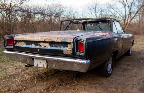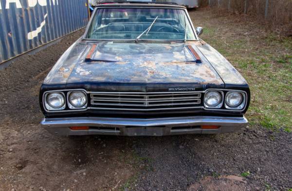 1969 Plymouth Road Runner convertible is a running and driving project that is equipped with a numbers-matching 383ci V8 and four-speed manual transmission. Finished in blue with missing paint over a black interior, the car has 14″ Magnum 500–style wheels, a soft-top frame and mechanism, dual exhaust, power steering, and a push-button radio. Recent work included cleaning electrical connections, changing the engine oil, and flushing the fuel system, brake fluid, and coolant, as well as replacing the fuel pump, fuel hose, spark plugs, and battery. Clean title in hand. Seriously inquiries only!! If interested leave a message and I'll contact you as soon as possible thanks.