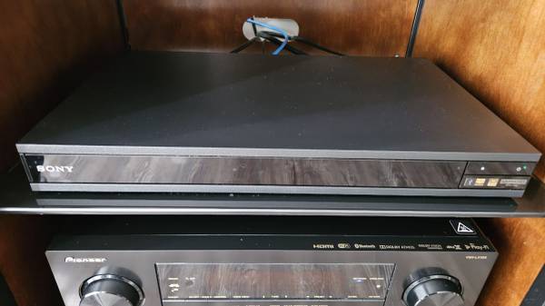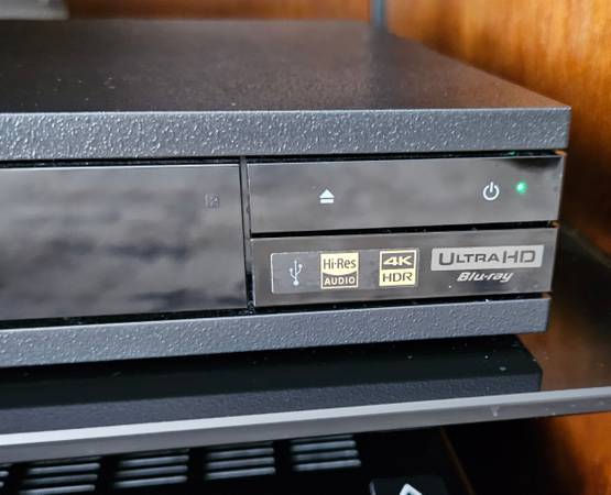 Sony Ultra HD Blu-Ray Player UBP-X800. 4K HDR, Hi-Res Audio, USB support. Remote control included.