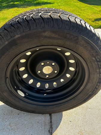 For Nissan or Dodge, New condition, never seen the road, Goodyear 20" Wrangler HP tire. It still has the red and green colors on the tread and the rubber vent spews showing it is a new tire. The tire size on the steel wheel is a 275 60R 20, which came on the Nissan Armadas Titans Dodge Durangos and Pick ups. Asking $150 for the tire wheel combo.