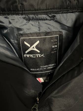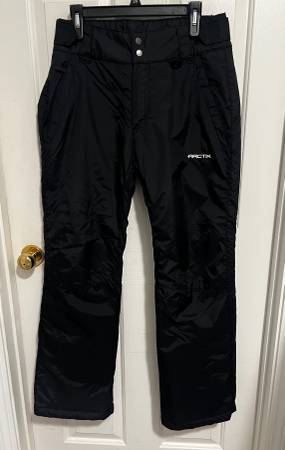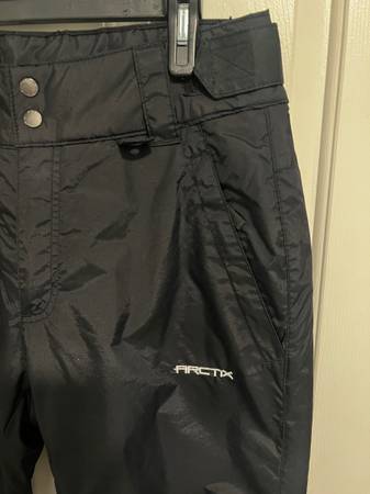 Black Arctix Womens sz Medium Snow Ski Pants velcro side adjustments, zipper & hook front, zippered front pockets, glove clip, snow gaiters snow winter cold skiing
