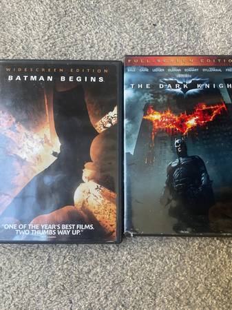 I have 2 dvds in a series of Batman Movies - The Dark Knight and Batman begins , both DVD for $4 in their cases. Call me if interested
