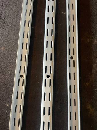 I have 3 Closet Made Shelf Track, white in color, vertical wall brackets. They are approximately 48" high by 1" wide. It is for the wall brackets only to build adjustable shelving in a closet or garage. They normally sell these for around $14.99 each. I am selling all 3 for $18. They have never been mounted. Call me if interested show contact info