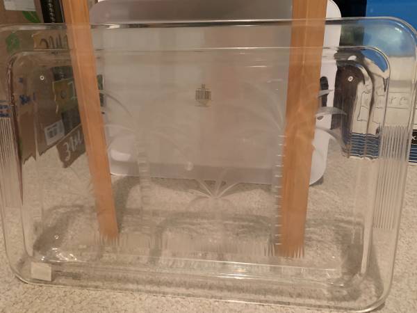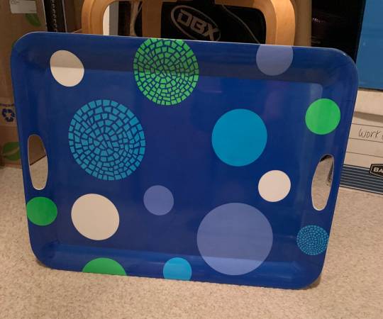 I have 4 fun serving trays: Blue with spots Clear with fish Clear with palm trees Turquoise Beach themed with palms and flamingo Perfect for pool side or even breakfast in bed! All 4 for $15 or $4...