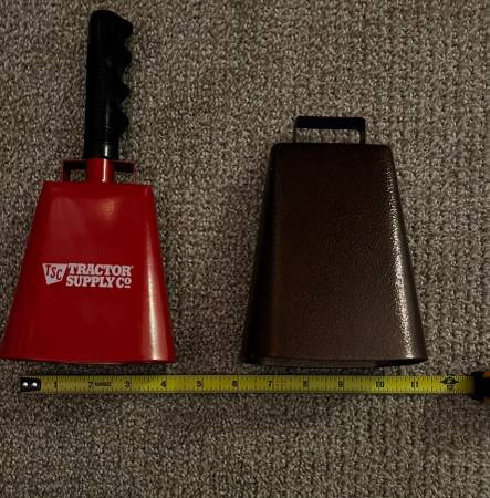 I have 2 red TSC cow bells $8 each (or both for $15) and 1 brown bell for $10