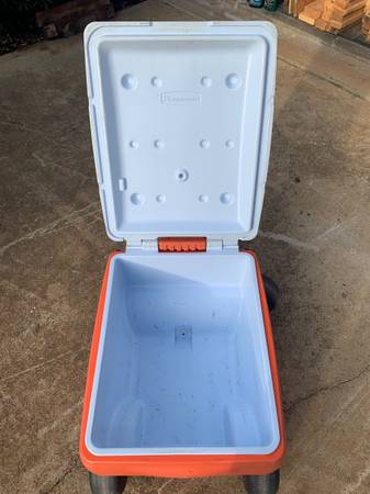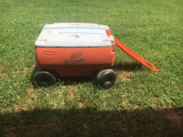 I have a very sturdy, large collectible - classic - Rubbermaid - vintage Gatorade brand oversized wheeled cooler. It has a deep well for ice and drink storage and is compactible for storage. Great for rough and sandy terrain to bring a cooler onto, such as sandy beaches and wooded field terrains, with theses over sized and very flexible, 360, pivot wheels up front. Asking $40. It is in decent shape.