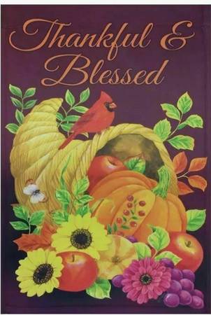 Thankful & Blessed (printed both sides) Happy Thanksgiving Fall is in the Air (printed both sides) Fade Resistant, Colorfast and Durable 12.5" by 18"long $8 each gift idea flag