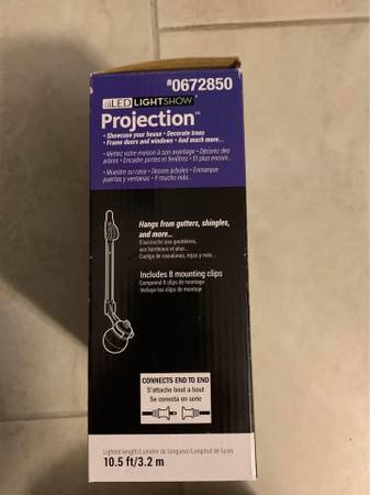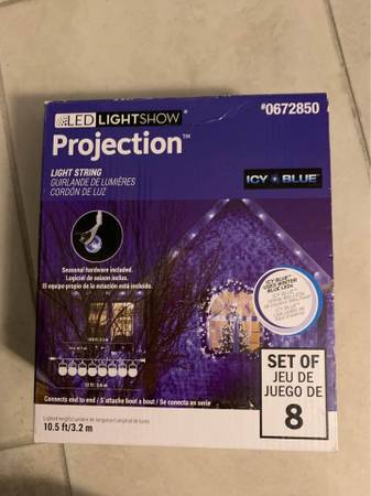 Still new in box Set of 8 projection bulbs Casts a swirl of dancing lights 10.5 ft Connects with others if desired Hardware included Great for any holiday like Christmas or for lighting your yard or...