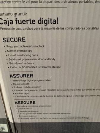 NEW IN ITS FACTORY BOX - EXPENSIVE Large Digital Safe theft protection for most laptops, pistols and valuable papers/items Solid steel, 24lb Capacity .98 cu ft Exterior: 8.9" H X 16.9" W X 13.6" D...