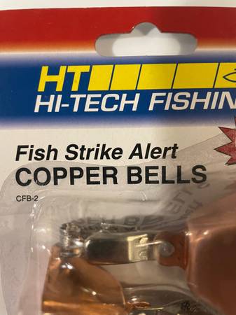 Still sealed in their new factory packaging, Hi-Tech Fish first strike real copper alert bells for those who do a lot of pier and waiting fishing. These sensitive bells let you know when their is action with your rod and the fish are biting. They are made of real copper, and sold for over $18. Asking just $7 for them. call me if interested show contact info