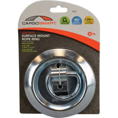 lighter duty set of 4 for $25 for all 4. The CargoSmart Surface Mount Light-Duty D-Ring easily mounts to the floor or wall of your truck or trailer. The D-ring adds extra holding power to you van, truck or trailer. This bed bolt creates a secure attachment point when hauling your cargo.