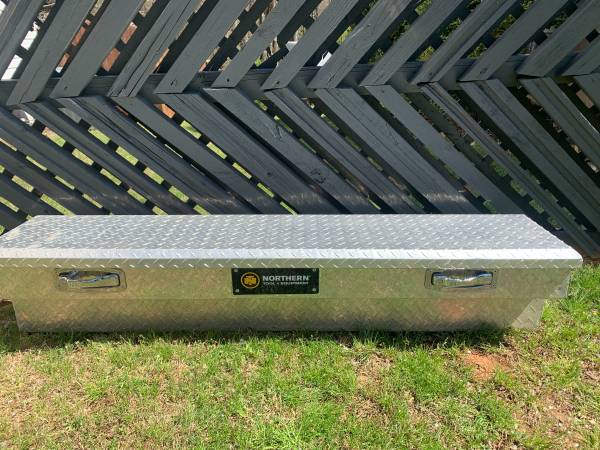 Northern Tool manufactured side truck diamond plated aluminum tool box. Its approx sizes are: 60" X 12 X 12 , TO FIT PICKUP TRUCKS. New this box is $359 plus sales. This is used but comes with their Lifetime warranty. I am REDUCING this to $165 for it, a big savings to you. It will need to have the locks rekeyed or locking mechanism replaced. These are around $10 each.