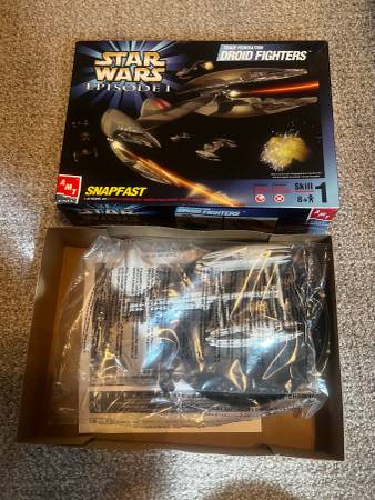 I have a new, collectible and un assembled, but open box- 1/43rd scale 1999 Snapfast model : Star Wars Episode 1 - Droid Fighters - AMT ERTL models. *Also have a Star Wars Red Squadron X-Wing...