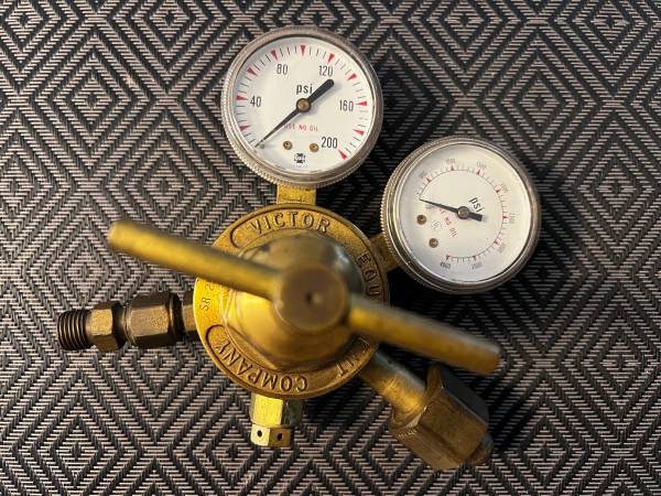 The VCT 250D Compressed Gas Regulator by VICTOR EQUIPMENT COMPANY is a single stage gas regulator designed for various gases such as oxygen, hydrogen, argon, CO2, helium, nitrogen, and acetylene. This unit is essential for controlling the pressure of the gas in welding and soldering equipment, providing a reliable and efficient solution for industrial applications requiring precise gas management. The VCT 250D is a high-quality product trusted by professionals in the CNC, metalworking, and manufacturing industries.