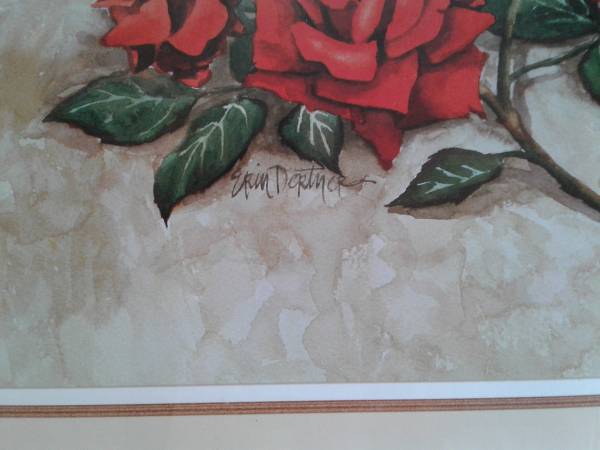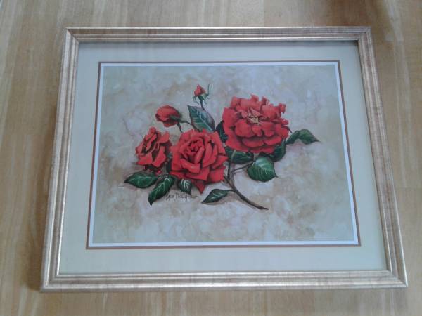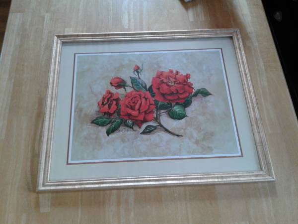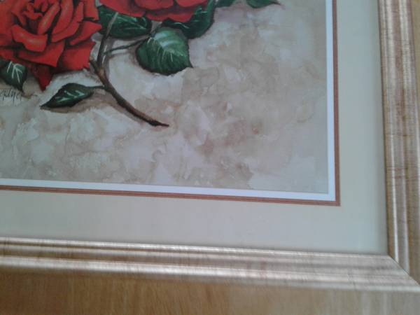 Erin Dertner Artist Framed Red Roses Print for sale for $10.00. It measures 22" x 18" and is in excellent condition.
