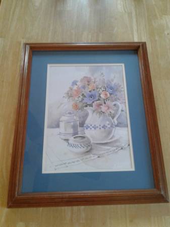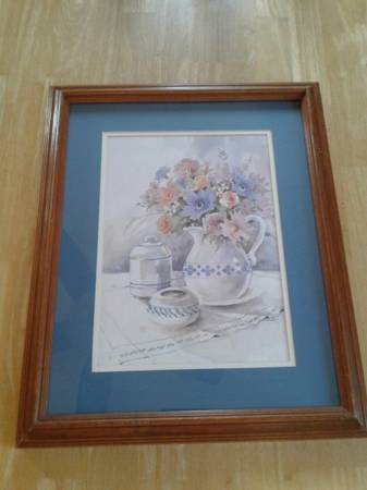 I have a Rosalind Oesterle Floral Still Life in Pitcher Watercolor Painting for sale for $10.00. The picture measures 23" x 18 1/2" and is in excellent condition.