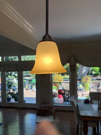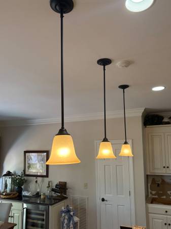 Pendant Lights -3- Hang 24 inches from ceiling (to top of globe)—-light globe 7 inches in diameter See photos for details $45 cash