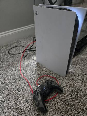 Playstation 5 with new camo controller and 3 games. Spiderman 2, God of War Ragnarok and a new unopened Call of Duty Black OPS. PS5