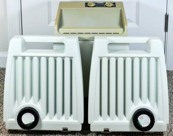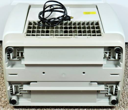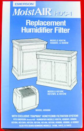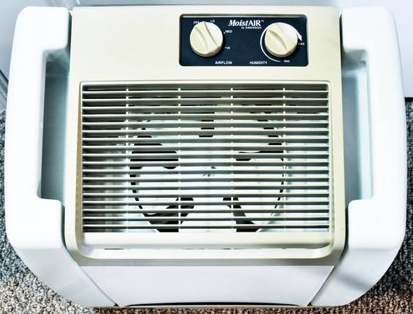 This used but not abused Emerson MoistAir model HD6000-2 humidifier is designed for rooms up to 1300 sq/ft and features adjustable humidity control, fan speed, and two water reservoirs with a 1.7-gallon capacity each.