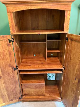 Beautiful Office Armoire for your office equipment. Lots of storage in this beautiful piece of furniture. Pickup only.
