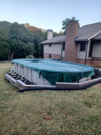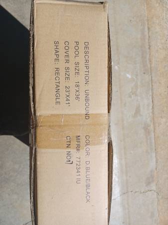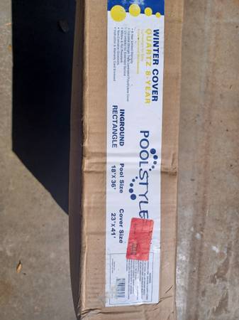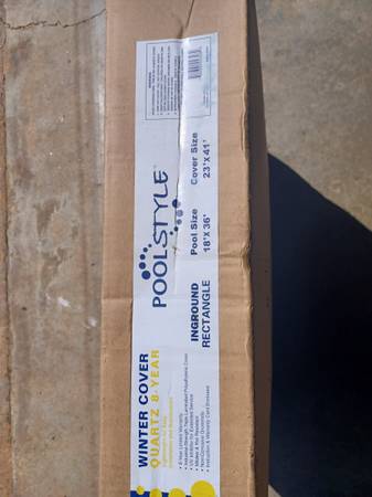 Poolstyle pool cover for 18'x36' oval/rectangular pool. Works for above or in ground pool. Cover size is 23'x41'. New, unopened, still in sealed original box. Color is dark blue/black. MSRP is $160.