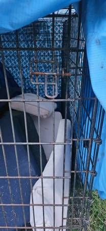 XXL dog cage used flr English mastiff. Originally paid over $200. Been outside for a month or 2 now a bit rusty but works. Missing 2 long pins for back panel bit replaceable and ill see if I can find them. Has 2 doors one in front and side asking 100 OBO