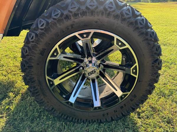 2012 Textron Ez Go, Model TXTE 48volt, complete restoration, new wiring, Sunburst Orange paint, lift kit, SS mags, off road tires, detachable face radio with speakers and lights, rear seat, top, fold down windshield, horn, headlights and tail lights, full view rear mirror, Trojan batteries, separate new deep cycle battery for horn, radio, high speed motor, fast cart. Charger included.