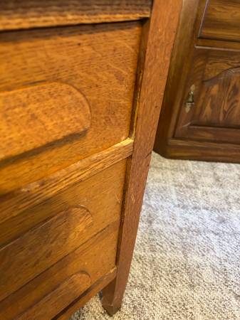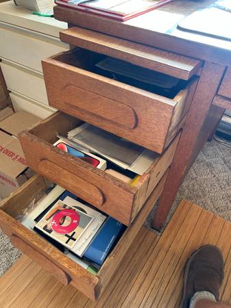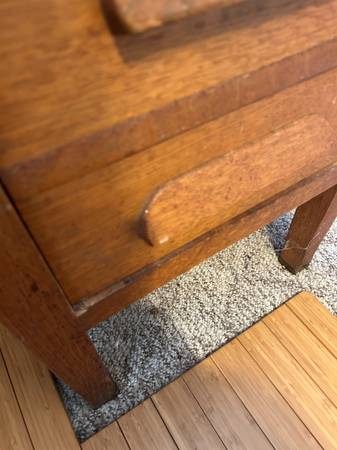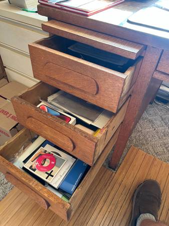 I bought this from a neighbor when I was a teenager in about 1973. It was painted green and I spent hours stripping the wood down to the original oak finish.