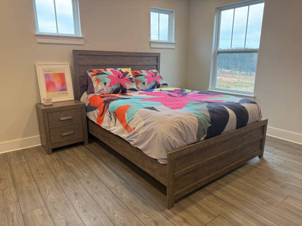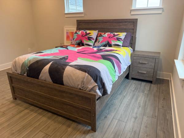 Queen sized bed frame 2 nightstands 6 drawer dresser 5 drawer chest OBO