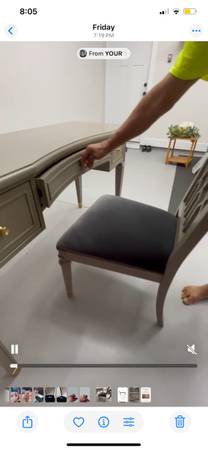 Jennifer Taylor desk & chair set Minor damage to the desk corners (shown in pics) Desk alone retails for over $750, and chair retails for $200 - *asking $460 for both* Desk is 55” long Chair...