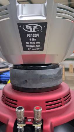 Great Subwoofer with custom box. Box dimensions are 13.5"H x 18"W x 16"D Sadly I do not have a use for it anymore. It put out more sound than I ever needed. Message for info