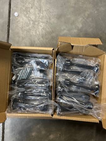 For sale 10 black door stops w/ hardware 26 drawer handles - 5" center hole to center hole
