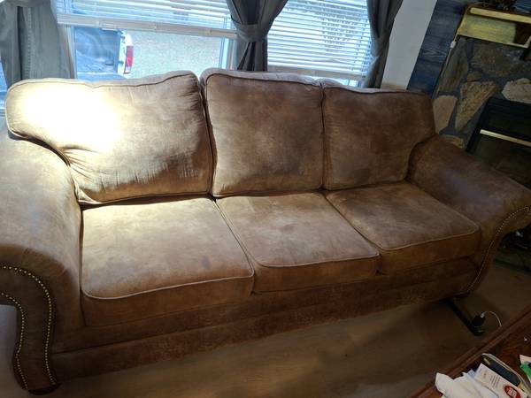 Couch amd chair with ottoman. In good condition. Text Rick