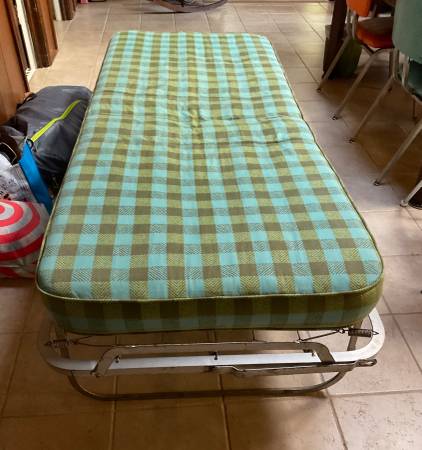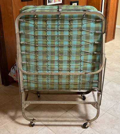 Rollaway twin bed easily folds for storage in good condition.