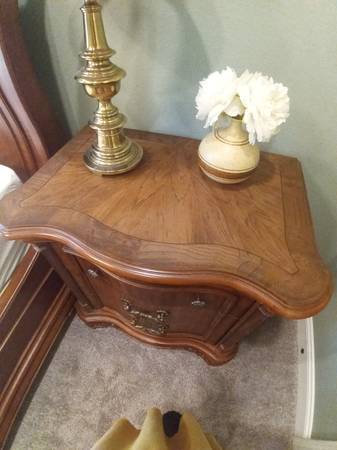 Bedroom Set Solid Wood- Sleigh Bed Queen Set, One matching nightstand. No Mattresses or Bedding included in sale, are available for sale for additional cost. ++++Furniture is Heavy bring Helpers to...