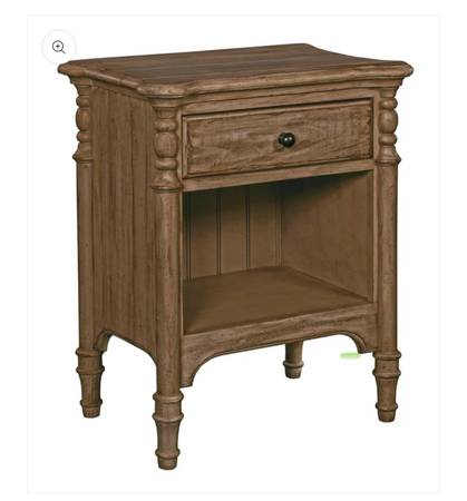 Kincaid Weatherford furniture collection in very good condition. Call/text/chat if interested. The two open nightstands are heather brown and have two black metal lamps with linens lamp shades. ($250)The Hamilton chest is in the corn silk color and has the top in heather (color of bedside tables).($350)