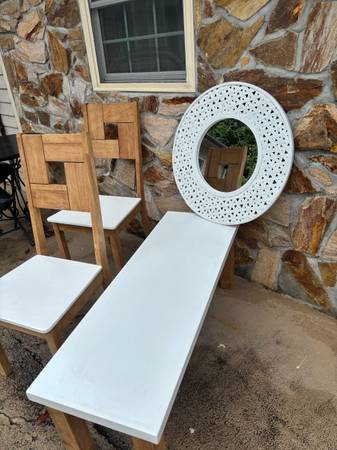 Set : Bench Mirror Chairs Natural wood Color: gold oak/white Inman ,SC