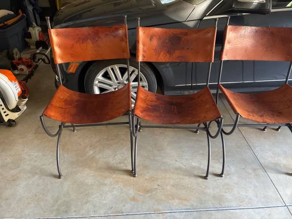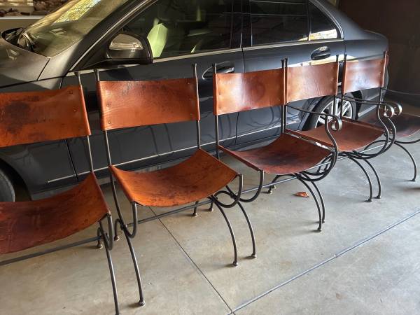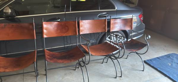 Charleston Forge wrought iron and leather matching chairs (paid $499 each). 6 chairs (4 side chairs and 2 captains chairs)
