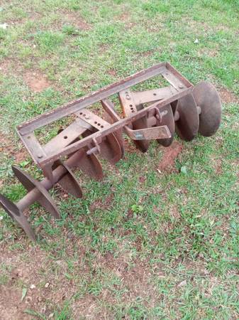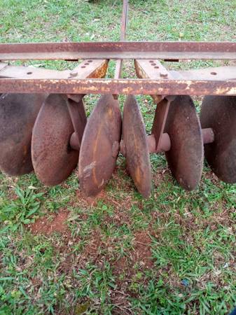 I have in excellent working condition, a deluxe 10 disk (5 on each side) harrow for plowing in the garden, very heavy duty and the disks are greasable.has a section on top that you can put cement blocks for added weight, the price is 350.00 and I think well worth the money. If interested please CALL me at show contact info