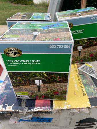 3 NEW Hampton Bay outdoor LED light sets lighting with 50 ft of electrical wiring for lighting. This is 3 new lights in boxes, and 50 ft of new outdoor electrical wiring for outdoor lights. No transformer. I will throw in several other used lights, all for just $20. The lights each cost $20 in the store. Great for entranceway or path lighting in your flower bed or landscaping. All for just $20 OBO. show contact info