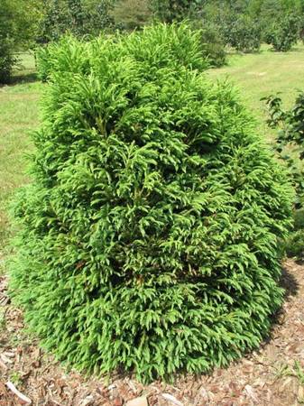 Sometimes called Jade Dragon, Cryptomeria 'Gyokuryo' is a cultivar of Japanese Cedar. It gets to be from 15-20' tall and 8-12' wide, but if you prune the vertical growth shoots once or twice a year it can be kept at a much smaller size. It likes a sunny spot but can tolerate bright shade. It is also drought tolerant once it is established. The foliage does not bronze in the Winter in most locations, especially on older plants. These are young plants in 3 gallon pots (see the last photo). Please call before you come. Thanks.