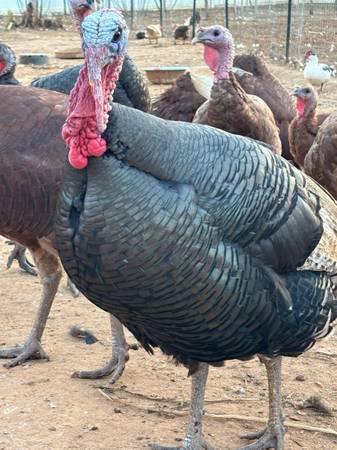 The breeds are Bourbon Red turkeys and Black Spanish turkeys $85 to $95 each depending on size
