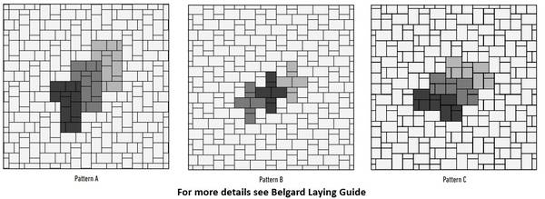 The mix of sizes will make the pattern shown on the picture. It can also make other patterns listed on pages 4-6 of the Belgard Laying Guide: